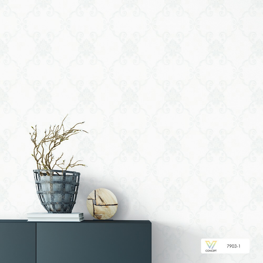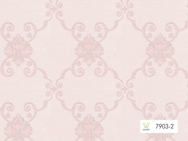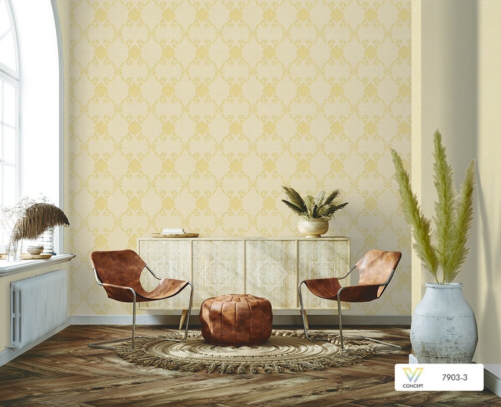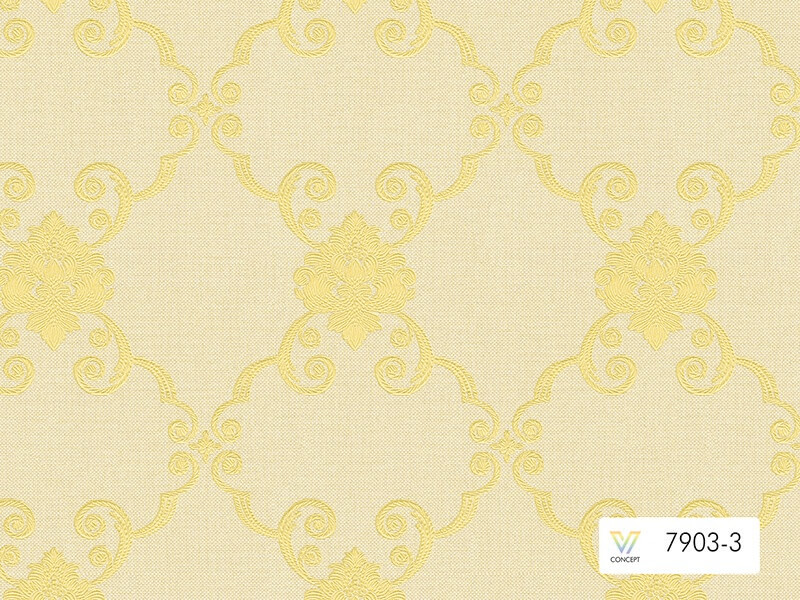Giấy dán tường tân cổ điển 7903 màu vàng, trắng, hồng, xanh ngọc đẹp sang trọng
