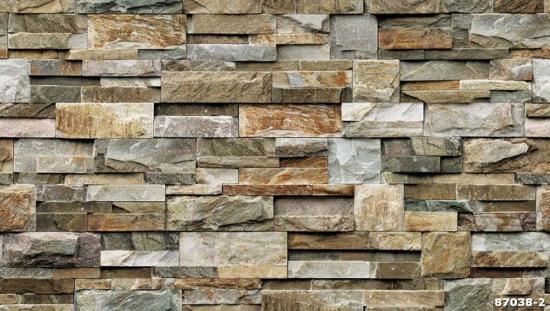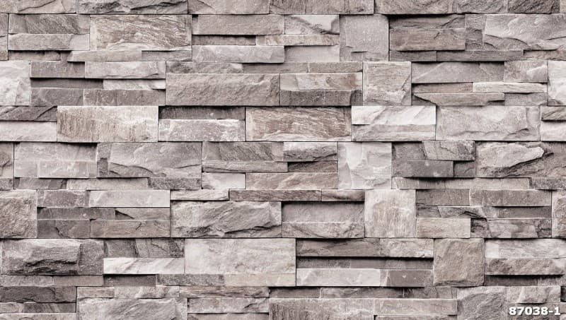 Giấy dán tường 3D giả đá tổ ong 87038 màu xám, vàng.