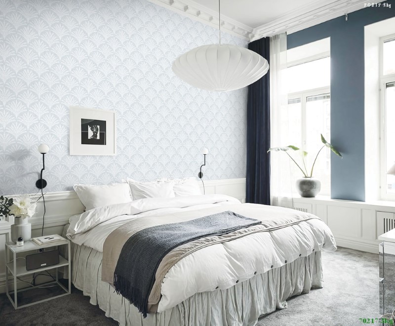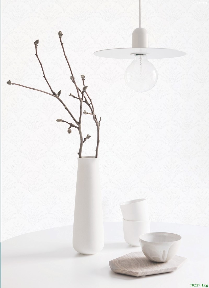 Giấy dán tường cao cấp Hàn Quốc họa tiết hoa lá hiện đại 70217-2 tông màu trắng, ghi, xanh ghi