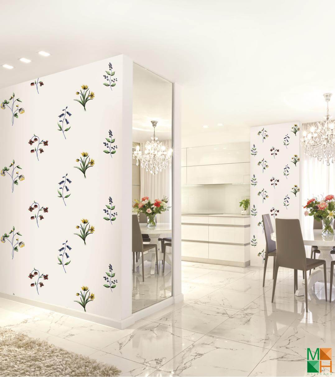 Mẫu giấy dán tường Hàn Quốc Living mới nhất với gam màu tươi sáng, họa tiết nhẹ nhàng pha nét mộc mạc của thiên nhiên đã tạo ấn tượng trong thiết kế nội thất không gian giấy dán tường.