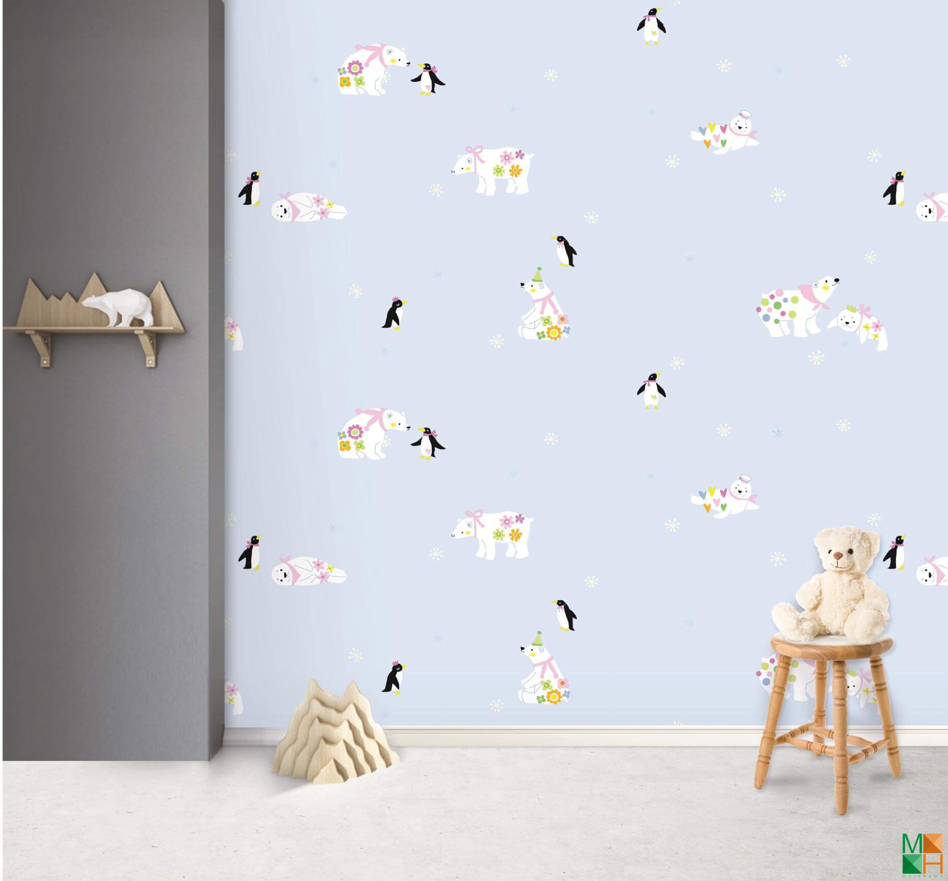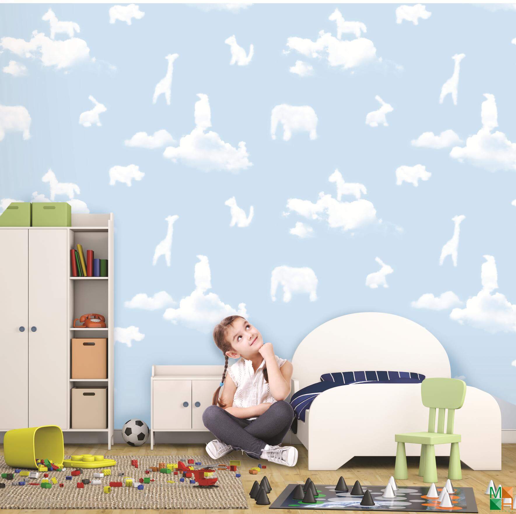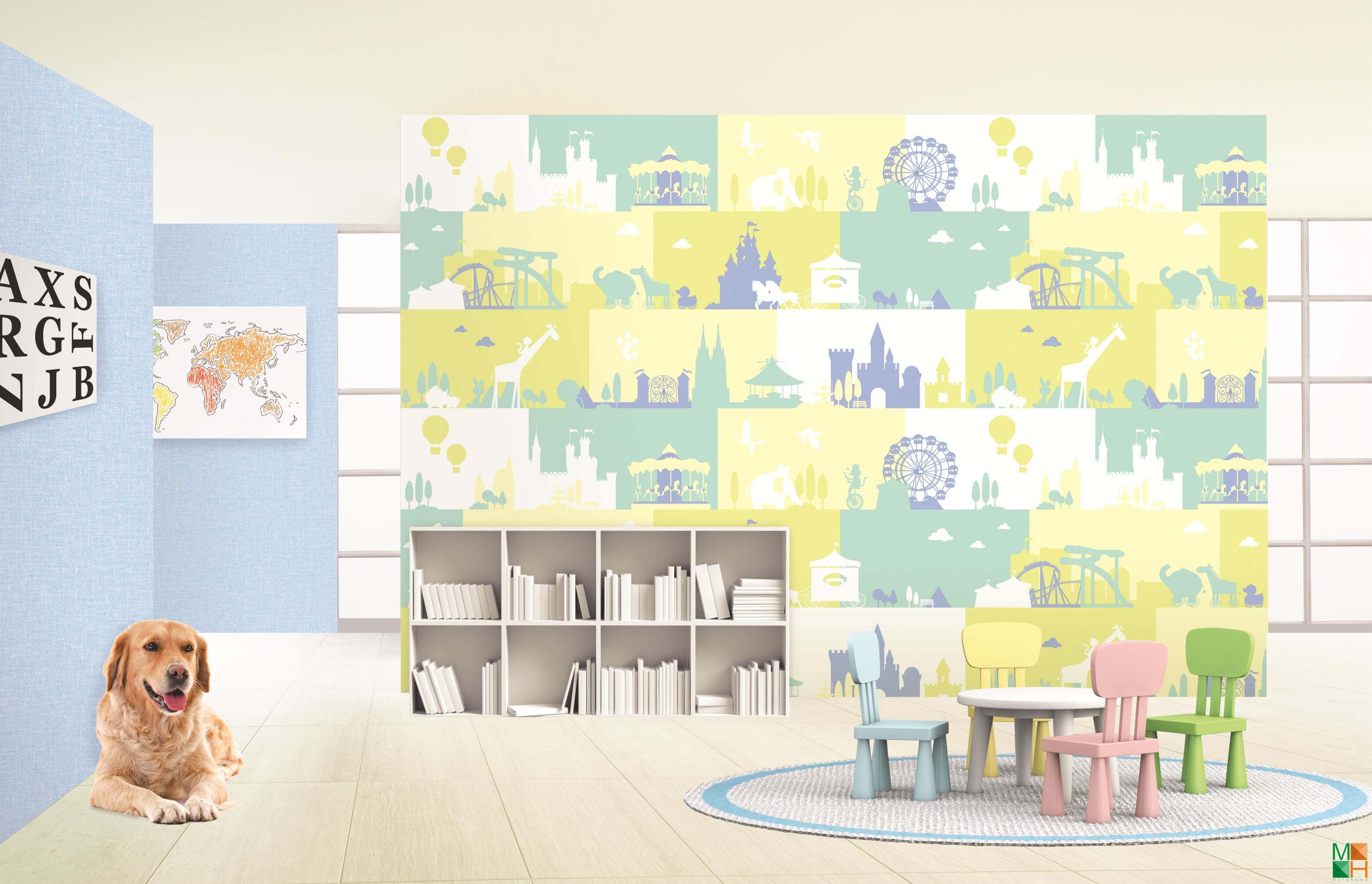 - Đặc trưng cho giấy dán tường phòng trẻ em, phòng bé trai, phòng bé gái.