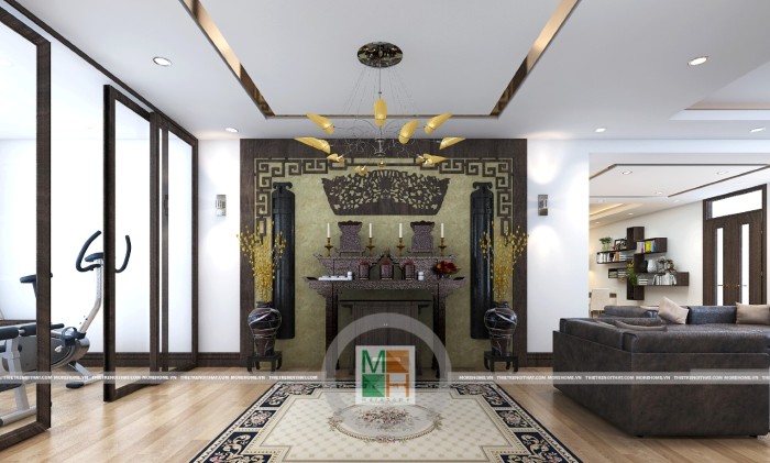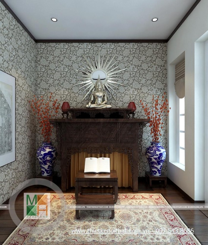 Thi công giấy dán tường phòng thờ tại hà nội