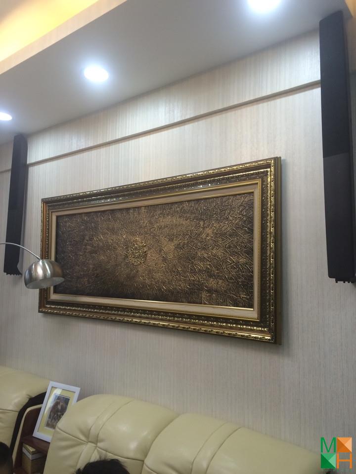 Thi công giấy dán tường phòng khách chung cư Green Star